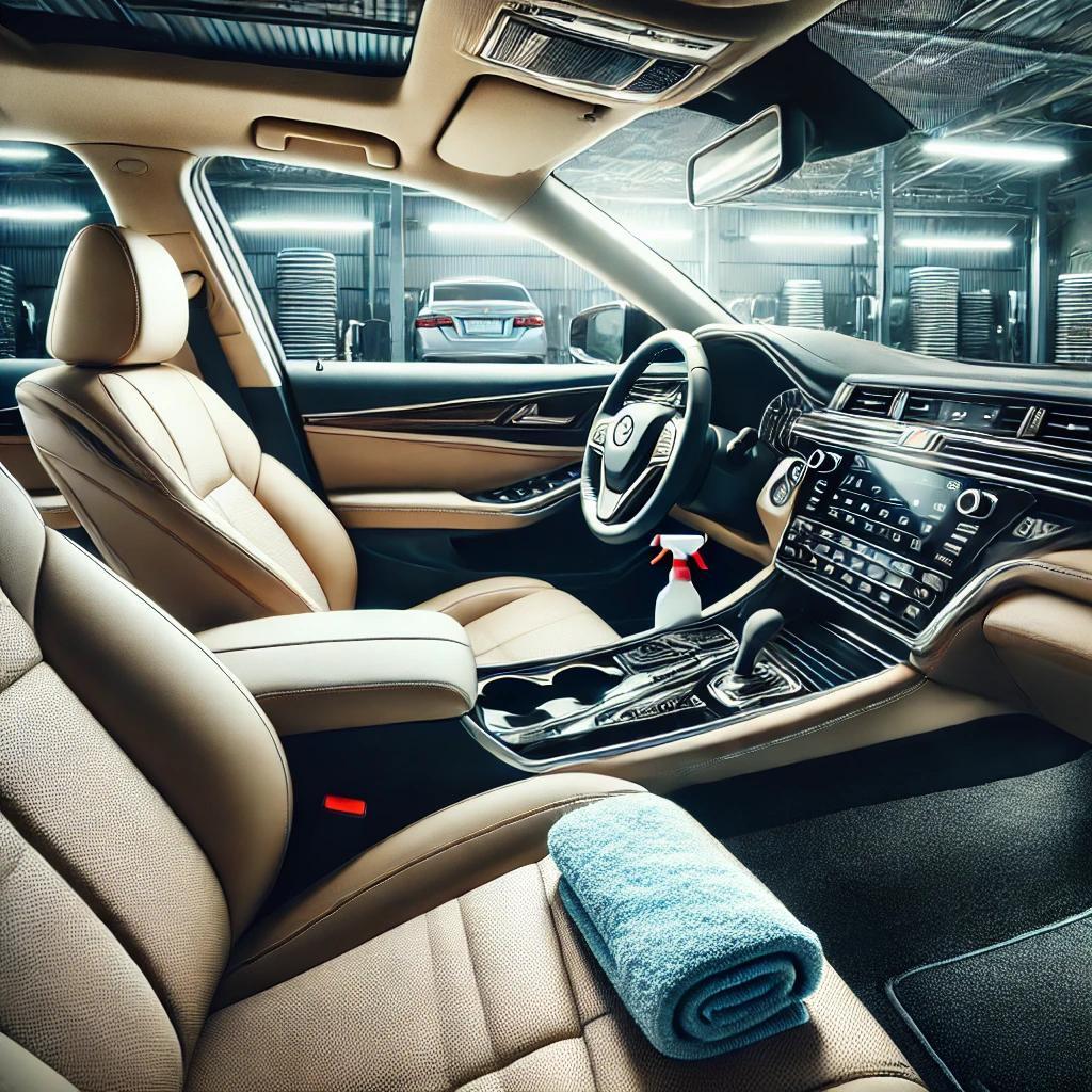 Czyszczenie wnętrza samochodu, w tym tapicerki, dywaników i podsufitki.
